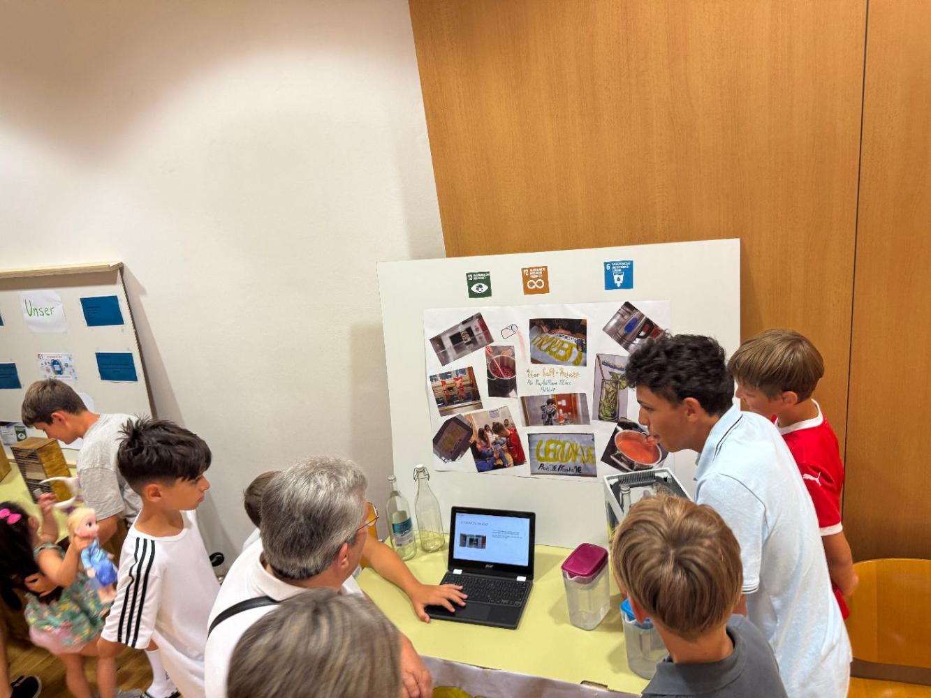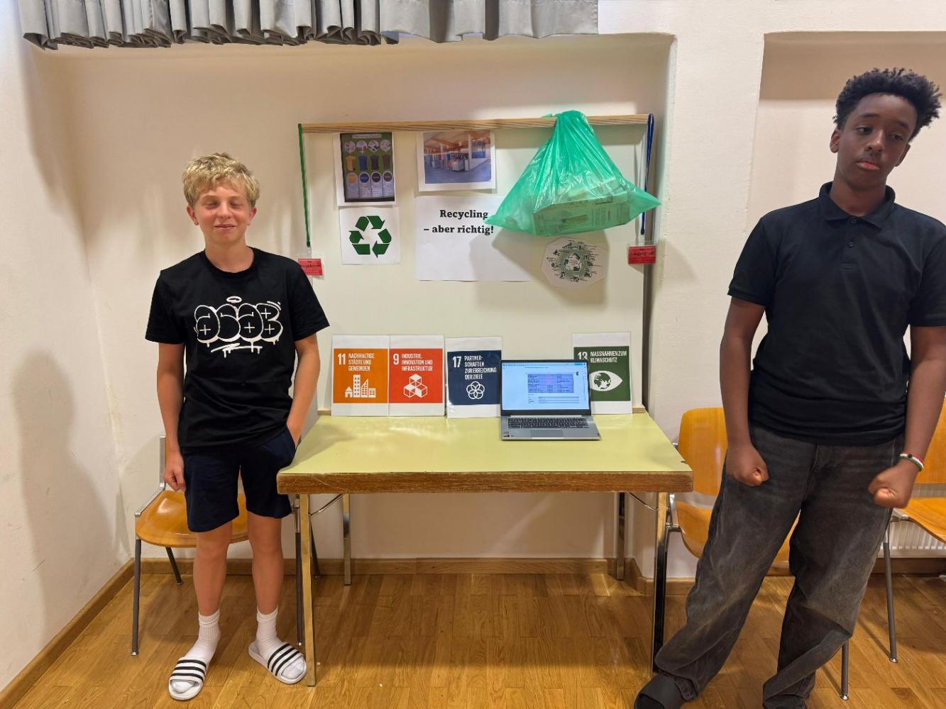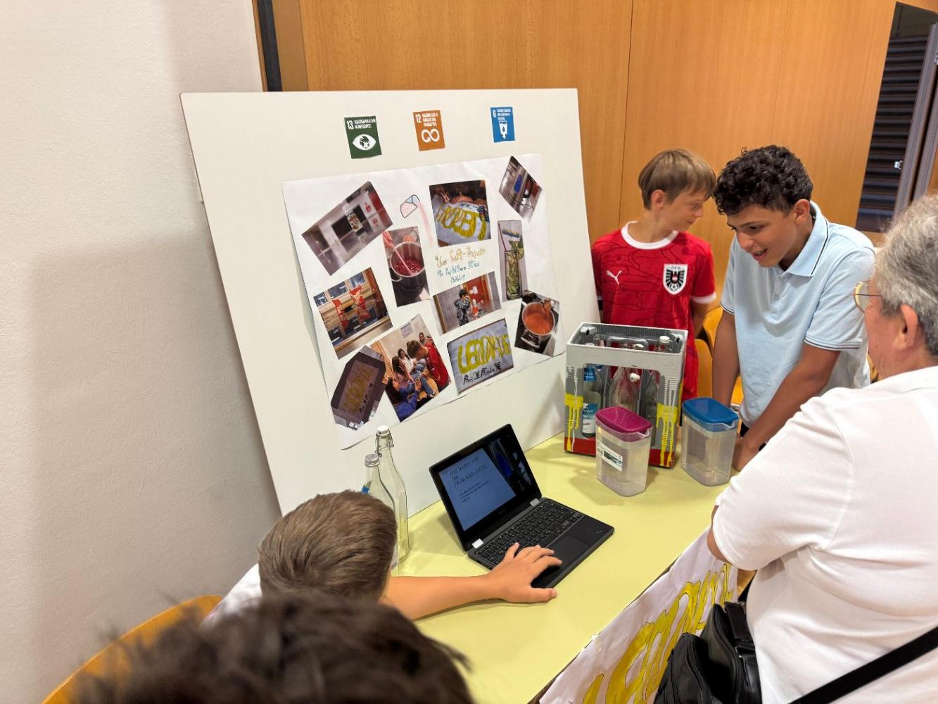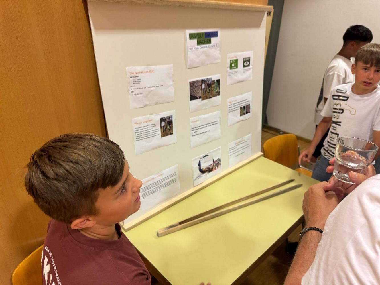 Die Schülerinnen und Schüler hatten die Gelegenheit, ihre Ergebnisse vorzustellen, ins Gespräch zu kommen und ihre Ideen mit Mitschülerinnen, Mitschülern, Lehrkräften und Gästen zu teilen. Dabei reichte die Bandbreite der Themen von kreativen Gestaltungen über praktische Lösungsansätze bis hin zu Visionen für eine nachhaltige Zukunft.
