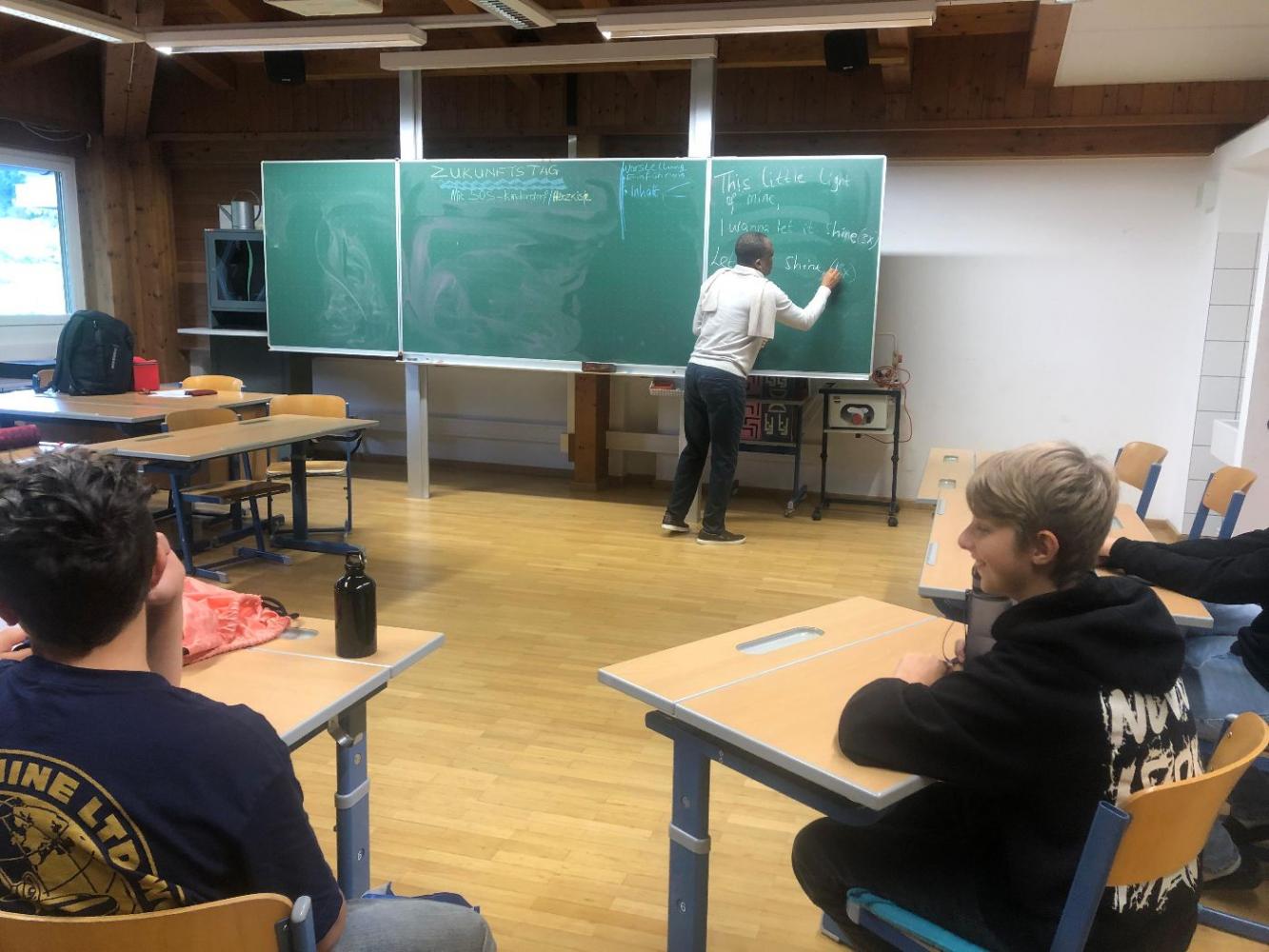Julian aus der 1b schreibt: "Heute hatten wir einen sehr spannenden Zukunftstag. Wir lernten viel über Krieg und über Flüchtlinge. Uns hat man über einen 18-jährigen Mann erzählt, der Afghanistan (seine Heimat) verlassen hat müssen. Es war sehr spannend. Danke an alle Mitarbeiter."